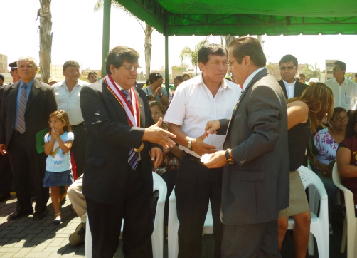 Chimbotenlinea.com (Por: Cintia Cabrera).- El alcalde distrital de Nuevo Chimbote, Francisco Gasco Barreto, culminó como siempre su discurso dominical recordando las oposiciones y votos en contra para aprobación de proyectos de los regidores que critican su gestión edil ocasionando que los vecinos sureños presentes en el izamiento lanzaran pifias contra los regidores Máximo Hernán García Pinedo y Ana María Cenas Peña. (En la foto alcalde estrecha la mano sin mirar a su opositor) Este último concejal, Cenas Peña últimamente ha alargado sus relaciones con el burgomaestre ya que en la última sesión extraordinaria se opuso a la vacancia de sus colegas Sandra Fernández Neyra, Robert Sáenz Huamanchumo y Hernán García Pinedo.