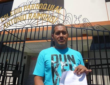 Chimbote en Línea (Denuncias).- Un padre de familia de la institución educativa privada, Antonio Raimondi de Chimbote, Ever Pino Medina, denunció que cuando fue a matricular a su hijo para el sexto grado de primaria le condicionaron que primero debería pagar un seguro contra accidente o presentar una declaración jurada, de lo contrario el niño no sería admitido en el plantel.