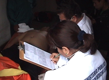 El médico legista Melvin Girón Cornelio informó que el occiso presenta tres impactos de bala, uno en la cara lado izquierdo, a la altura de la oreja del mismo lado y en el hombro izquierdo. (Texto y foto Lindberg Cruzado)