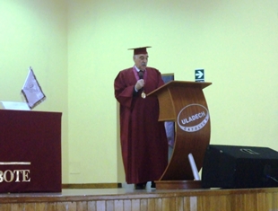 A su turno el rector de la universidad, Julio Domínguez Granda, agradeció a los ilustres visitantes y remarcó que la institución basa sus modelos educativos en la constante innovación tecnológica y la internacionalización, cultivando relaciones de cooperación bilateral como la que mantienen con la Uned de España.