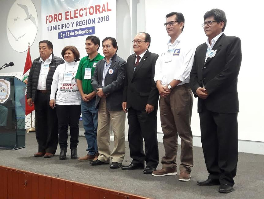 Los candidatos que asistieron fueron: Luis Antonio Luna Villarreal (Podemos por el Progreso del Perú), María Helvezia Balta Salazar (Juntos por el Perú), Hernando Venus Mantilla Rodríguez (Partido Aprista Peruano), Yemil Aníbal Encarnación Valverde (Siempre Unidos), Gabriel Peregrín Mejía Duclós (Perú Patria Segura), Juan Santos Rebaza Carpio (El Maicito) y Jesús Rodríguez Fuentes (Ancash a la Obra)