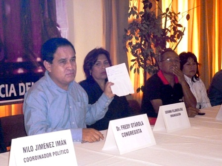 En otro momento Otárola Peñaranda se refirió a la crisis en cuanto a representatividad que tiene el partido en nuestra provincia, manifestando que los que se sentaban en la mesa eran los únicos representantes del partido. A su costado se encontraba entre los demás personajes, Nilo Jiménez a quien muchos nacionalistas han desconocido como su representante.
