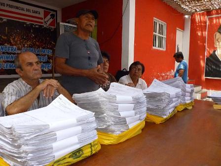 Chimbotenlinea.com (Por Leidy Cobeñas) Cada vez están más cerca de la meta. El Comité Pro Revocatoria informó que hasta el momento han recolectado más de 100 mil firmas para la revocatoria del presidente del Gobierno Regional de Ancash, Cesar Álvarez Aguilar, y del alcalde provincial, Luis Arroyo Rojas.(Foto Leidy Cobeñas)