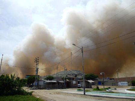 Las grandes humaredas producto de la quema de totora que crece en los humedales se propagó hasta varios poblados aledaños al distrito de Nuevo Chimbote y también hasta el mercado La Perla y la zona industrial del 27 de Octubre.