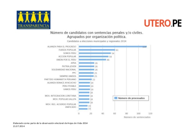 “Esta cifra nos parece alarmante porque en varios casos se trata de candidatos que han sido sentenciados por delitos contra la administración pública y que hoy postulan a la presidencia de una región o a un cargo municipal”, comentó.