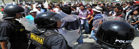 Chimbotenlinea.com (Por: Lindberg Cruzado).- Efectivos policiales dispersaron con gas lacrimógeno a unos 300 estudiantes de la Universidad Nacional del Santa (UNS) que marchaban pacíficamente por el centro de Chimbote exigiendo la derogatoria del artículo 7 de la Ley 29914, el cual contempla que el pago a los docentes contratados se realicen con los recursos de las propias casas universitarias.