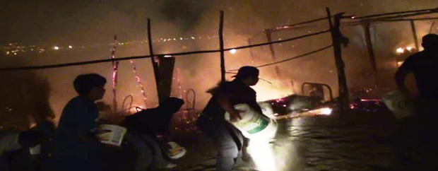 Chimbotenlinea.com (Por Cintia Cabrera).-Más que tristes, se sienten indignados los moradores de la habilitación urbana progresista Julia Barreto, en Nuevo Chimbote, donde la noche de ayer tres familias quedaron a la intemperie a causa de un voraz incendio que arrasó con 6 precarias viviendas, a causa de la indiferencia de la autoridad provincial para formalizarlos.