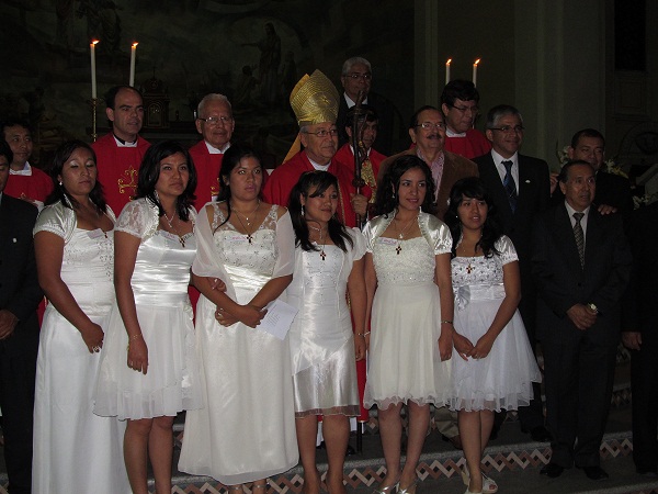 Hasta la majestuosa catedral ubicado en el distrito de Nuevo Chimbote llegaron el rector de la universidad Julio Domínguez Granda, decanos de facultades, directores de escuelas, estudiantes y trabajadores para compartir la palabra de Dios y presenciar la iniciación cristiana de un grupo de siete jóvenes, entre administrativos y estudiantes que recibieron el sacramento de la comunión y la confirmación.