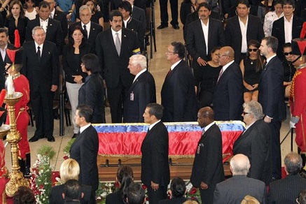 Chimbote en Línea (Internacional).- El funeral de Estado del presidente de Venezuela, Hugo Chávez, quien falleció el martes, comenzó en Caracas con la presencia de una treintena de jefes de Estado y de Gobierno.