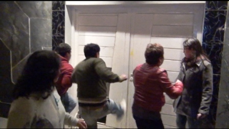 Los “flamantes” esposos tuvieron que ingresar al exclusivo local en una camioneta con lunas polarizadas e inmediatamente se cerraron las puertas, pero las personas que protestaban en el exterior con pancartas patearon y destruyeron la puerta principal.