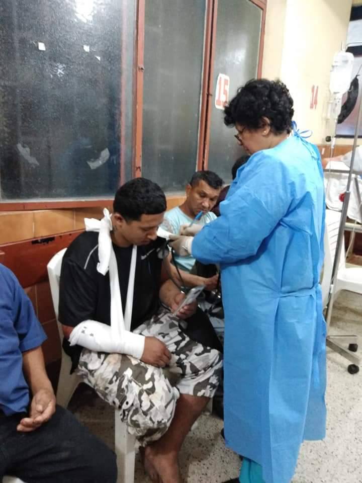 El personal médico se encuentra atendiendo a los heridos, realizan actividades como la limpieza de heridas, vendaje, sutura de las heridas y sobre todo analizan si presentan fracturas óseas que requieran inmediata intervención quirúrgica.