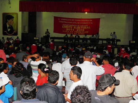 Chimbote en Línea (Locales).- Un grupo de 20 obreros de construcción civil fue impedido a ingresar a la reunión del Sindicato de Construcción Civil convocado por el comité electoral para aprobar su reglamento de elecciones preparado a la medida del actual secretario general Víctor López Padilla que pretende re-reelegirse.