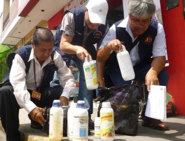 Entre los productos se encontraron 39 frascos de insecticidas y foliares vencidos desde el mes de febrero del año pasado, asimismo 3 sobres en polvo de insecticidas en las mismas condiciones, procediendo a ser incautados por la subgerente de Licencia y Comercialización de Mercados, Jazmín Baltazar Pérez, para luego ser incinerado, ya que su efecto es tóxico al contacto con el ser humano.