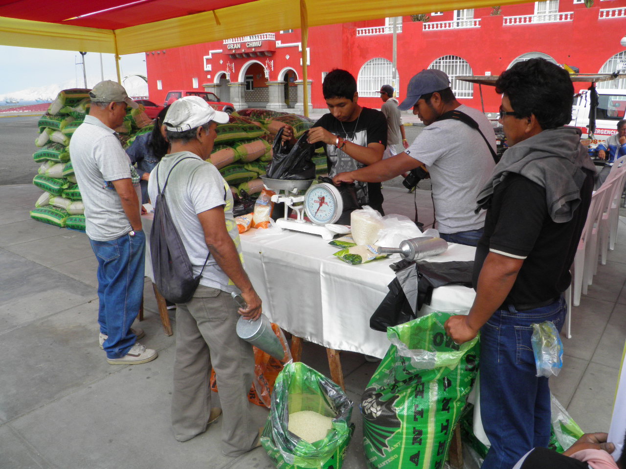 Desde muy temprano las amas de casa acudieron a comprar su saco de arroz valorizado en 115 nuevos soles. En tanto el kilo de primera calidad lo venían ofreciendo en 2 soles con 30 céntimos, a pesar que en el mercado su precio fluctúa en 2. 80 céntimos.