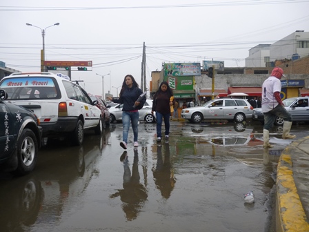 Los trabajadores de Sedachimbote llegaron hasta el lugar para succionar el agua que se había estancado, señalando que esto se originó por la ruptura de una tubería de agua muy antigua, además de los trabajos que se vienen ejecutando en el casco urbano.