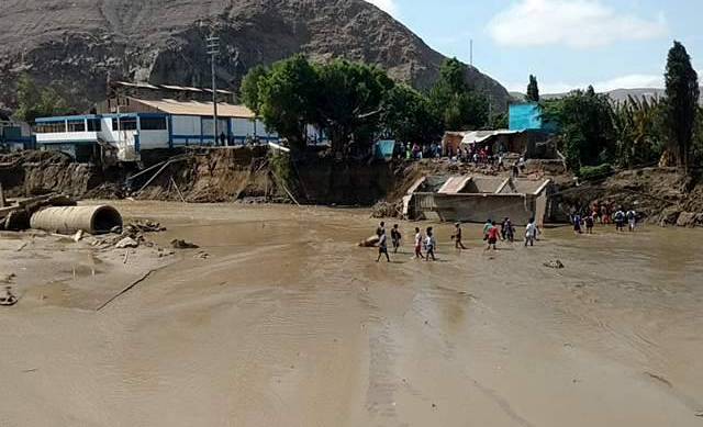 Se pudo advertir además la presencia de personas que cobran 4 soles por pasar bultos o productos agrícolas en sacos hacia el otro lado de la vía, pasando en medio de las aguas del río, ahora desbordado en ambos márgenes.