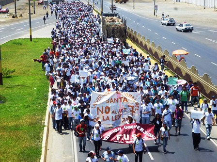 “Esta es una medida de lucha nacional para derogar la ley 29914 que manda que los ascensos de los docentes sean pagados por los estudiantes cuando eso viene directamente del tesoro público. Hay una protesta generalizada en el país de todas las universidades públicas porque con esto se pretende privatizar la educación. Mañana marcharemos en Lima para expresar nuestro rechazo”, expresó.