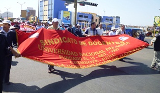 Los docentes se movilizaron desde el campus universitario por las principales arterias de Nuevo Chimbote acompañados por los trabajadores administrativos que mantienen su
