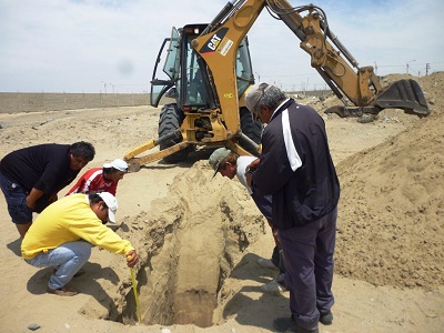 Chimbote en Línea (Nuevo Chimbote).- Como parte del proyecto de expansión urbana que realiza el Ministerio de Vivienda, Construcción y Saneamiento (MVCS) en el distrito de Nuevo Chimbote en coordinación con la municipalidad del sector, se realizan trabajos de calicata y excavación en pueblos aledaños a la Carretera Panamericana Norte (CPN) para determinar la profundidad de agua.