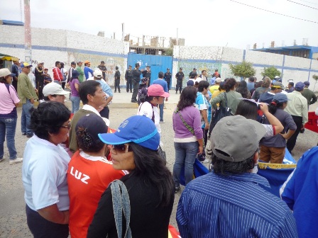 Chimbotenlinea.com (Por: Cintia Cabrera).- Cerca de dos horas, los escolares de la Institución Educativa (I.E.) “Augusto Salazar Bondy” permanecieron retenidos en el interior del plantel ante el temor de ser víctimas de los maestros huelguistas que se encontraban en el exterior del plantel y esperaban la salida de los profesores denominados “amarillos” por ambas puertas de ingreso.