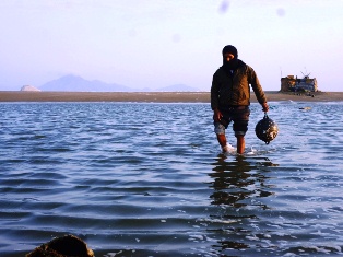 Un “cortinero” que yacía frente a la playa Anconcillo informó que en horas de la tarde terminó de reubicarse pues en la mañana el oleaje provocó la salida del mar y trajo consigo una laguna la cual tuvo que atravesar para terminar de recuperar sus bollas.