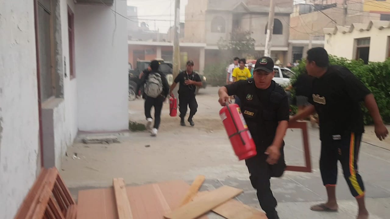 Serenos de Nuevo Chimbote ayudan a controlar incendio en local de maderera