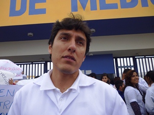 Son más de 450 estudiantes los afectados que hoy expresaron su reclamo con pancartas y hasta impidieron el ingreso de la Decana de la Facultad de Medicina, Elizabeth Llerena, quien al llegar a sus labores fue confrontada por el alumno Jorvi Suárez, al expresar el pliego de reclamos. Uno de los puntos, la irregular elección del próximo decano sin voz y voto de la representación estudiantil.