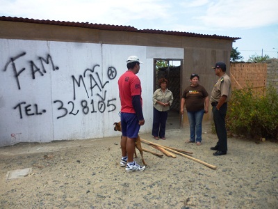 Los sujetos fueron interceptados por tres vecinos de la zona que encontraron las maderas fuera de la vivienda con clavos incrustados, todo hacía notas que habían sido desprendidas recientemente de la rustica construcción, la puerta se hallaba abierta.