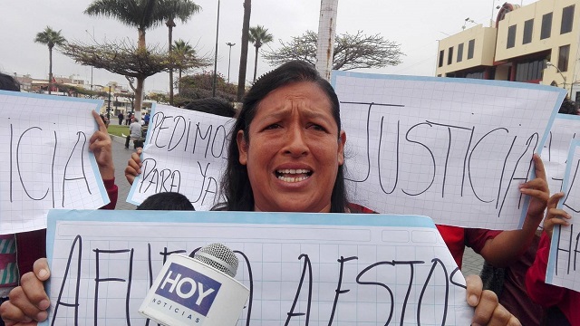 “Estamos en las calles denunciando a una jueza que cerró sus ojos a las pruebas y puso en libertad a cuatro secuestradores que estuvieron a punto de matar a mi sobrino, quien lleva ocho días internado en el Hospital La Caleta. Esta magistrada decidió darles comparecencia restringida a estos cuatro malvados porque tres fueron policías porque si hubiesen sido ciudadanos comunes y corrientes o pobres como nosotros ya nos hubiesen mandado a la cárcel porque así funciona la justicia en Chimbote”, protestó indignada Lourdes Solsol Giraldo.