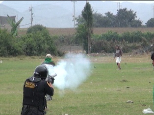 Los pobladores se enfrentaron con piedras y avellanas a los policías que dispararon bombas lacrimógenas para dispersarlos. En los 50 minutos de intenso enfrentamiento terminaron heridos ocho agricultores, entre ellos Mario Carrillo Cornelio, Víctor Castro y otro de apellido Cumpa.