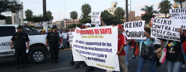 Chimbotenlinea (Lindberg Cruzado) Keiko Fujimori Higuchi fue abucheada durante su mitin proselitista en la plaza de armas de Chimbote. Familiares de los nueve campesinos de Santa desaparecidos por el Grupo Colina, en el gobierno de su padre Alberto Fujimori, le malograron la fiesta, tanto así que tuvo que cortar su discurso para retirarse. VER NOTA COMPLETA
