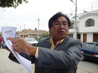Chimbotenlinea.com (Por: Cintia Cabrera).- El próximo 8 de Agosto se leerá la sentencia por el delito de Difamación en contra del ex consejero regional Ezequiel Nolasco Campos, quien desde ya advierte que dicho proceso puede estar dirigido ya que la jueza Edith Arroyo Amoroto encargada de este dictamen es prima del alcalde provincial Luis Arroyo Rojas.(Foto Cintia Cabrera)