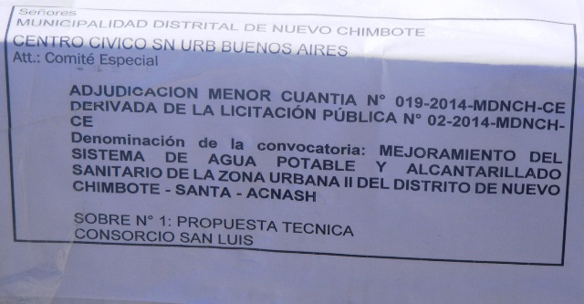 Además informaron que dicha licitación se llevaría a cabo a las 4 de la tarde en el Palacio Municipal, ubicado en la Plaza Mayor de Nuevo Chimbote.