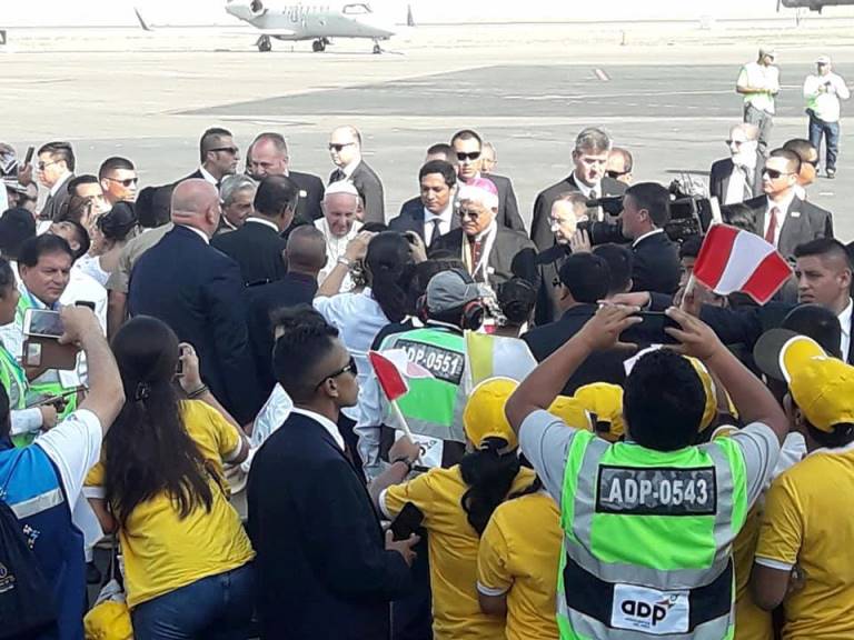 Chimbote en Línea.- Tras el emotivo recibimiento en el aeropuerto Carlos Martinez de Pinillos en la ciudad de Trujillo, a las 8:48 de esta mañana, su santidad el Papa Francisco partió inmediatamente a la explanada de Huanchaco donde ofició una multitudinaria misa acompañado de un mar de fieles, arzobispos de todo el mundo y de nuestro país, así como autoridades religiosas y políticas, entre ellos el presidente de la república Pedro Pablo Kuczynski.