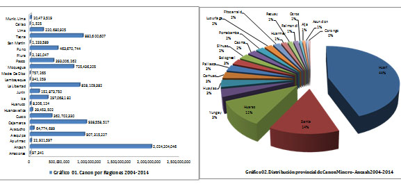 Entre los años 2004 y 2014 el departamento de Áncash , fue la región que mayor monto por Canon Minero recibió a través de las transferencias del Gobierno Central, alcanzando un poco más de  S/. 8,480,912,184.