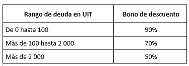 El sujeto con mayor rango de deuda, tendrá menor bono de descuento, según el siguiente cuadro: