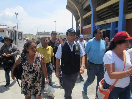 Chimbote en Línea.- El Fiscal de Prevención del Delito de la provincia del Santa, Carlos Zavaleta Grandez, estuvo en el Estadio Centenario de Chimbote, donde se encuentran refugiadas más de 450 personas que quedaron varadas en nuestra ciudad, tras el desborde de los ríos y la interrupción de la Carretera Panamericana Norte, hacia el norte como al sur del país.