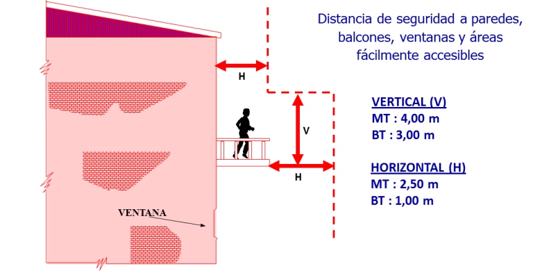 Si realiza trabajos de construcción de su vivienda cerca de las redes eléctricas, tome las medidas de seguridad necesarias para que no haya contacto accidental con nuestras redes eléctricas, tenga presente las Distancias Mínimas de Seguridad: