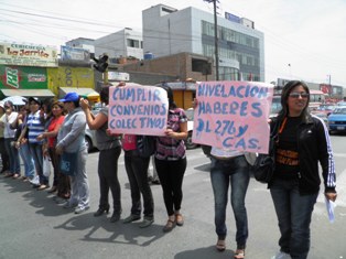 El dirigente indicó también que los administrativos de menor nivel que perciben mensualidades de 1,900 y 1,700 soles deben ganar 4,400 y 3,300, respectivamente.