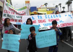 Chimbotenlinea.com (Por: Lindberg Cruzado).- Con carteles y pancartas en mano y lanzando arengas, medio centenar de vecinos de Tamborreal, llegaron esta mañana a Chimbote para efectuar una marcha de protesta en contra del funcionamiento de la empresa Seagro SAC, procesadora de marigold, porque presuntamente viene contaminando a la población.