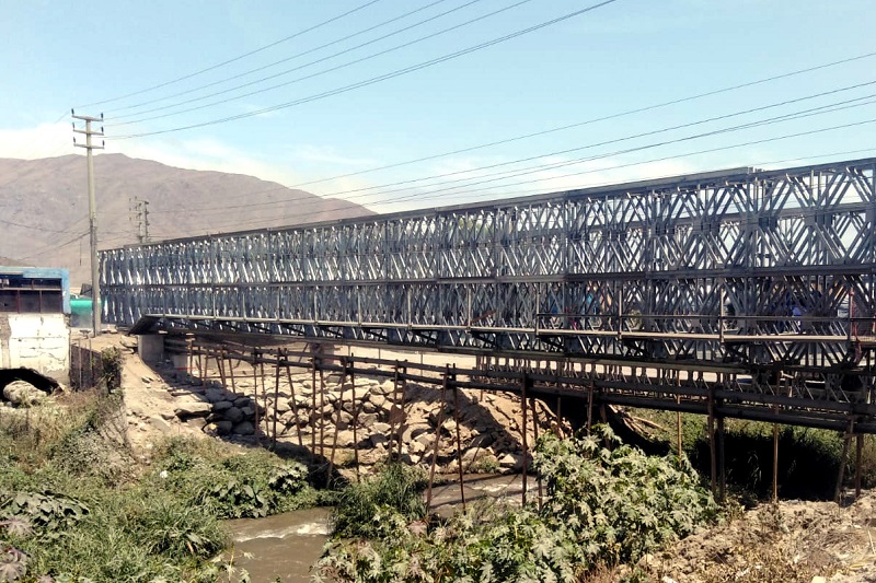 Durante la ejecución de los trabajos se habilitó un paso provisional, aguas abajo del eje del puente, con el fin de no interrumpir el tránsito vehicular mientras se realizaba el retiro de la estructura afectada y el lanzamiento del nuevo puente modular de doble vía. Este tiene una longitud de 52 metros y cuenta con pasarelas peatonales.