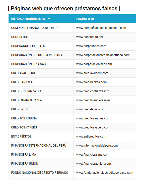 Chimbote en Línea.- Desde hace varios meses, la Superintendencia de Banca, Seguros y AFP (SBS) les sigue los pasos a varias páginas web de entidades financieras fraudulentas que ofrecen préstamos por internet.