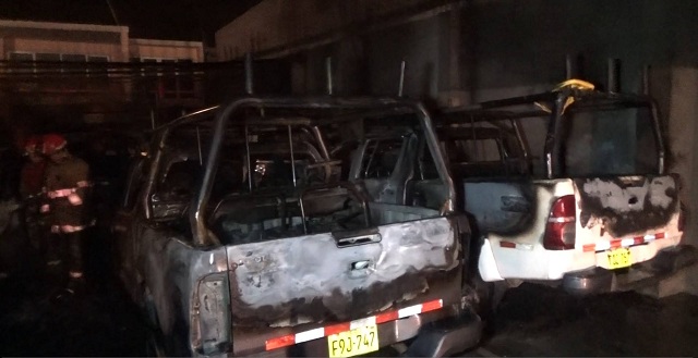 Chimbote en Línea.- El almacén de la empresa Negocios Metalúrgicos SAC se prendió en llamas en la urbanización El Bosque en Nuevo Chimbote y cuatro vehículos terminaron calcinados.