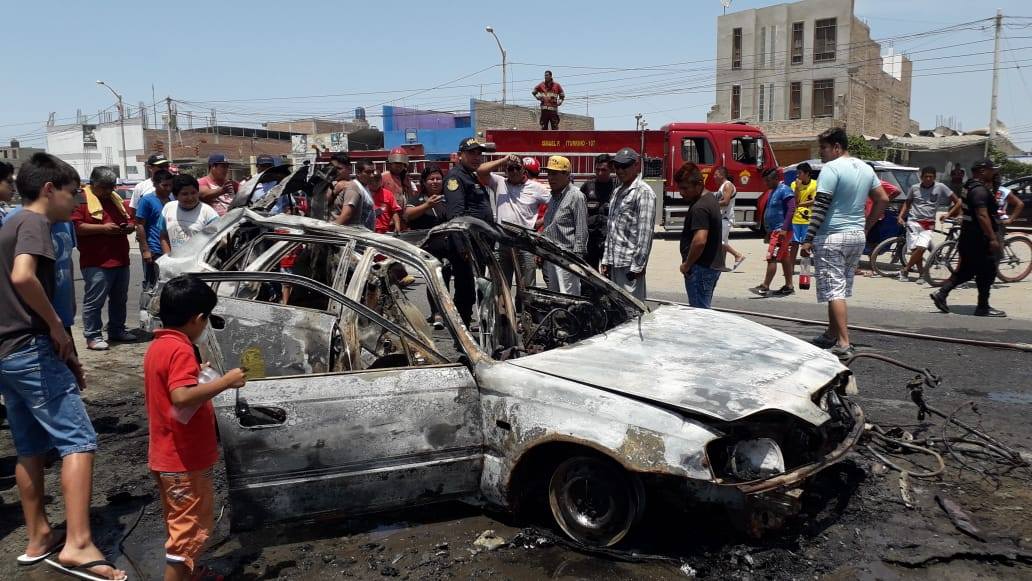 Los agentes de seguridad ciudadana informaron que Florencio Calderón Ayala de 72 años junto a su familia salvaron de morir calcinados luego que su vehículo se incendiara y explosionara cuando se dirigía por la avenida Anchoveta.
