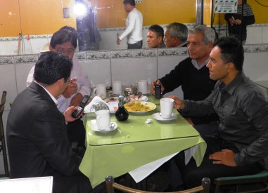 El dirigente de transportes Líder Saavedra Paredes también se reunió con el oficial en retiro.(Texto y fotos Lindberg Cruzado)