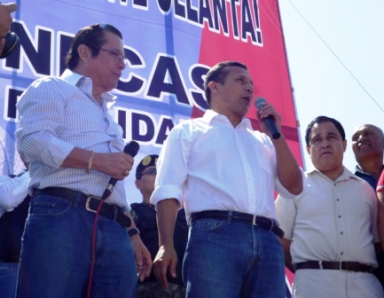 A su salida del aeropuerto, el mandatario Humala Tasso conduciendo una camioneta negra se estacionó frente a la multitud que lo esperaban con cientos de pedidos. La población no pudo ser controlada por los efectivos policiales, desatando un caos tremendo.