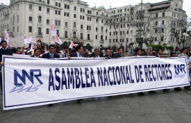 Desde muy temprano la Plaza Dos de Mayo fue colmada por representantes de las universidades La Cantuta, Agraria, Nacional de Ingeniería, además de funcionarios de la Asamblea Nacional de Rectores y juventudes partidarias del Apra, PPC, Perú Posible y Nacionalistas quienes dijeron no a la infiltración senderista y al Movadef.