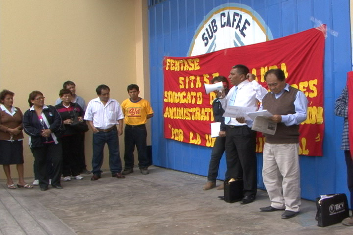 El plantón estuvo convocado por  el secretario general del Sindicato Trabajadores Administrativos de Centros Educativos(Sutace) de la Unidad de Gestión Educativa del Santa (Ugel) Santa, Luis Aparicio Cavero, quien contó con el respaldo del Sindicato Único de Trabajadores Educativos de la Provincia (Sutep).