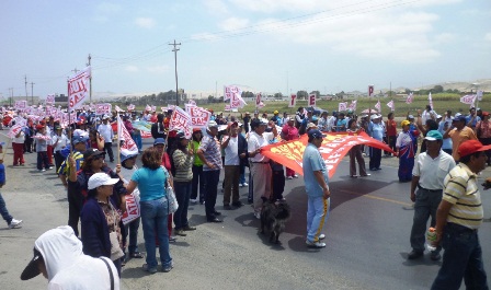 por la carretera Panamericana al mando del subsecretario, Humberto Jara. Estos manifestantes su encontraron con los estudiantes de la Universidad Nacional del Santa con quienes continuaron la marcha hacia la Plaza Mayor de Nuevo Chimbote.